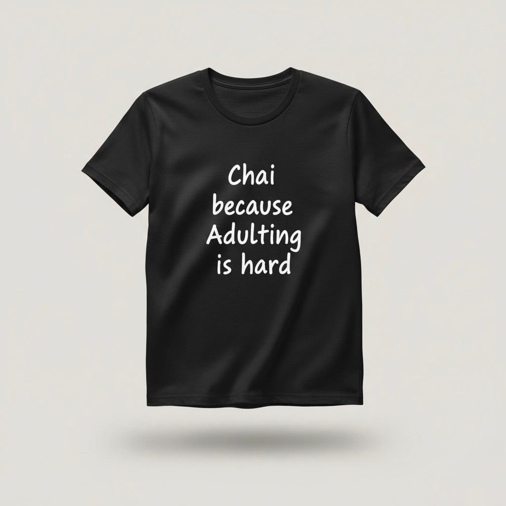 The "Chai Because Adulting Is Hard" Tee: Your Daily Dose of Relatable Humor. Perfect for Chai Lovers!